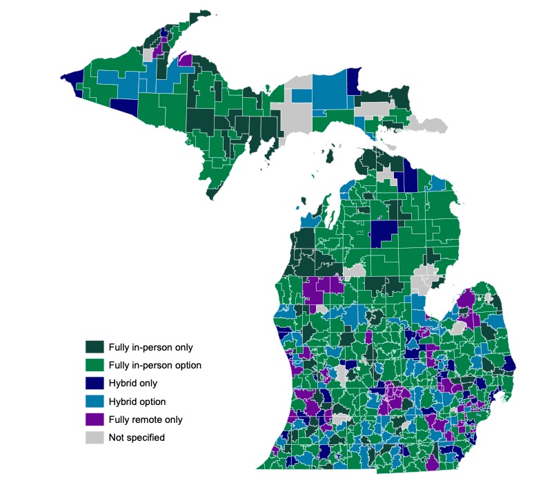 Additionally, the report found that 59% of Michigan school districts are offering students at least the option to return to school five days a week, and 27% of districts are providing students with the ability to return to school at least two to three days a week.