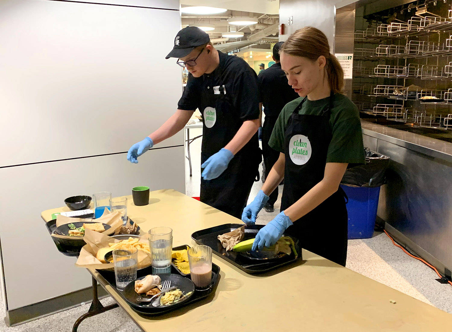 Students from Clean Plates at State conduct audits of food waste in dining halls. Photo taken pre-pandemic.