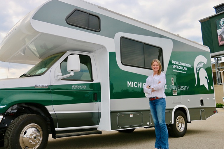 Bridget Walsh, an assistant professor of communicative sciences and disorders in the MSU College of Communication Arts and Sciences, has a new mission: put a speech development lab on wheels to reach children and families away from her brick-and-mortar lab on the East Lansing campus. Walsh received a $3.1 million grant from the National Institutes of Health to study the risk factors in children that lead to chronic stuttering in adulthood.