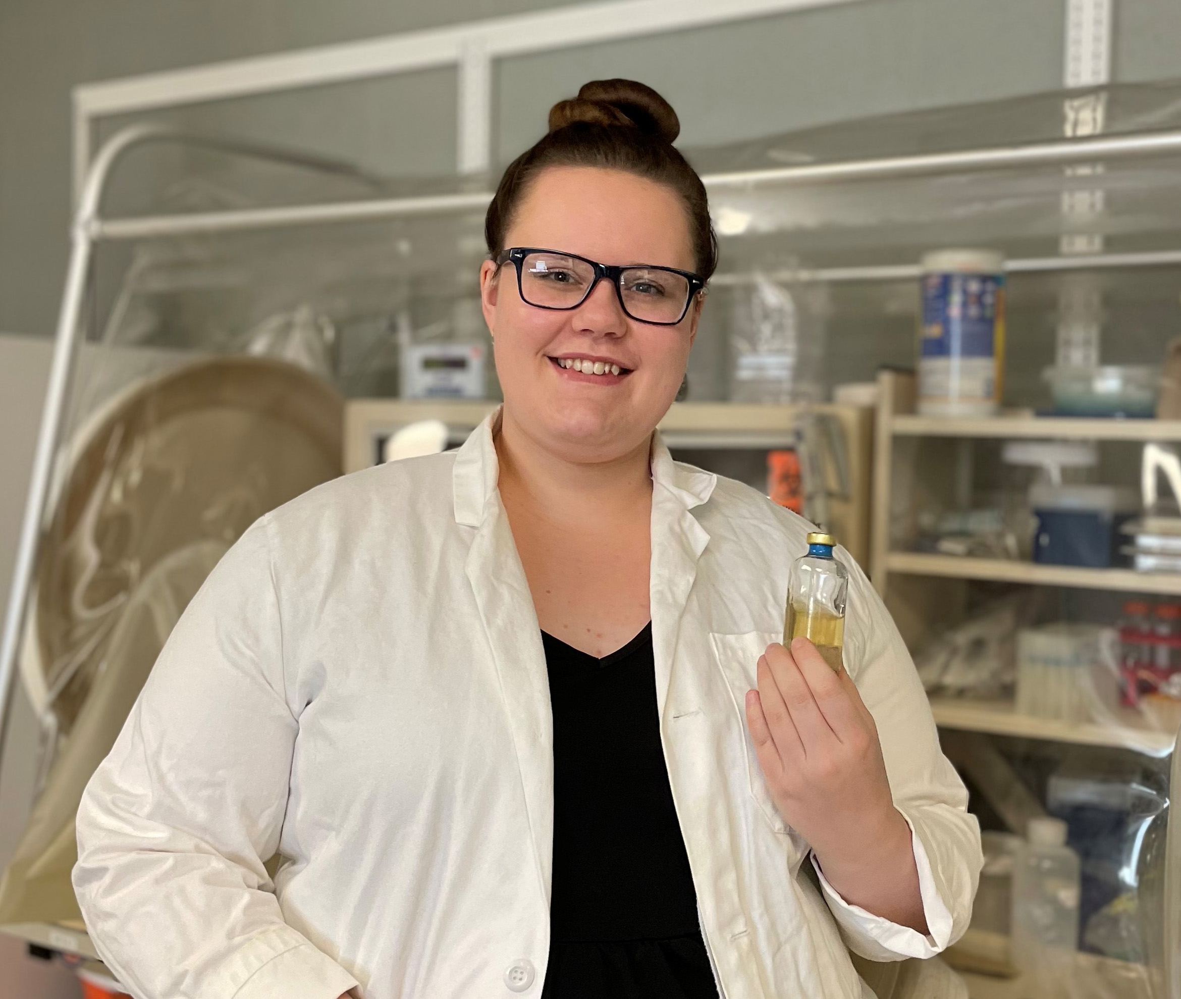 Morgen Clark is a third-year doctoral student in the Reguera Lab, studying microbiology and environmental toxicology in the Microbiology and Molecular Genetics Program and the EITS Doctoral Program.