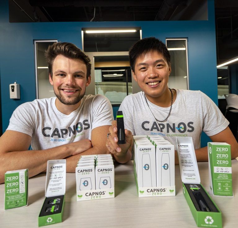 Founder Brendan Wang, supply chain management senior, and co-founder Jake Roach, finance senior, both struggled with vaping. Now, they are helping other people who aim to quit vaping or smoking succeed by addressing the behavioral addiction. They created the patent-pending CAPNOS Zero, a flavored, pressurized air inhaler. With each hit, a valve pops open to create a deep-hit sensation that feels like vaping, but with no smoke, nicotine or charge. It’s just flavored air!