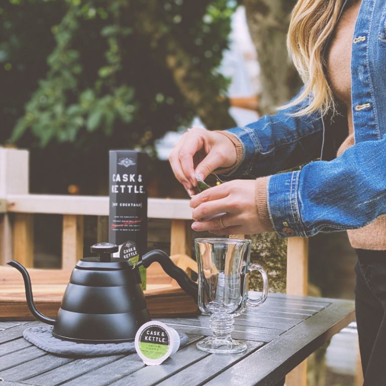 You had us at hot cocktails! Cask & Kettle, co-founded by Lucinda Wright (B.A. Marketing ’84, MBA ’92), offers hard coffee and cider cocktail pods that can be prepared in any Keurig-style brewing machine or simply peeled and poured into a mug of hot water.