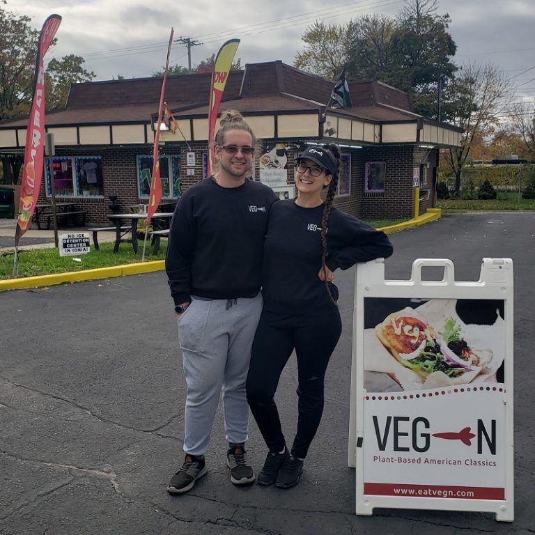 Jonathan Ristola (B.S. Mechanical Engineering ’18, M.J. Intellectual Property Law ’20) and Christabelle Dozeman (B.A. Communication ’17) know firsthand that a plant-based lifestyle has countless lasting benefits. In an effort to share this experience with the rest of the world, and to take direct action on climate change, they started VEG-N as a food truck in 2019 and relaunched it as a drive-thru venture in Lansing last February.