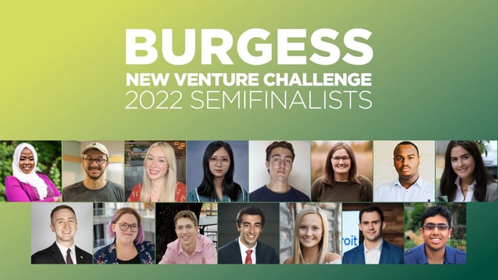 The Burgess Institute for Entrepreneurship and Innovation announced the 15 semifinalist teams selected to compete in its fourth annual contest, the Burgess New Venture Challenge.
