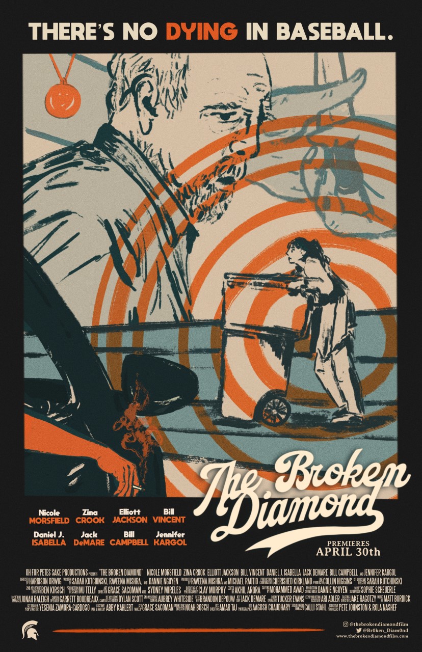 The Spring 2022 Fiction Filmmaking Capstone Class, the largest to date, took on its most ambitious film project in the history of the course, exceeding the annual class budget of $5,000 to create the 30-minute film “The Broken Diamond,” which will premiere on Saturday, April 30, at 7 p.m. in room B115 of Wells Hall.