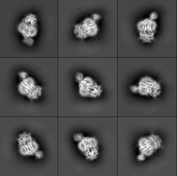 The research team used a technique known as cryogenic electron microscopy, or cryo-EM, to image the bacterial protein complex. First, the team created pure samples of the nanosized proteins they were studying. Those proteins then went into a water-based solution that the researchers used to coat a sample holder, or grid. The researchers then dip the grid in liquid ethane that freezes the water so fast it can’t crystallize, resulting in a glass-like ice.