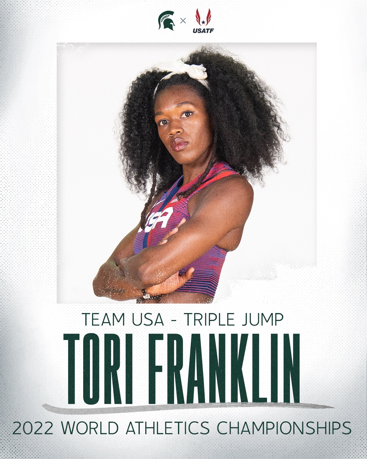 2020 Olympian Tori Franklin will once again represent Team USA next month at the World Athletics Championships Oregon22 after a second-place finish in the triple jump Saturday, as six current or former Michigan State athletes completed action this weekend between the Toyota USATF Outdoor Championships and the Bell Canadian Track and Field Championships.
