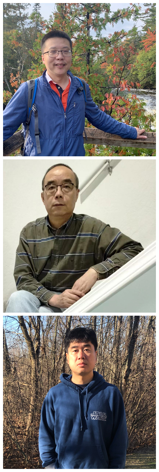 The research team led by Michigan State University also included (top to bottom) Kaifu Gao and Dexin Sui, formerly of MSU; and Min Su, who is the director of the University of Missouri’s Electron Microscopy Core. Gao now works in industry as a senior machine learning drug discovery scientist and Sui is a research laboratory specialist at the Life Sciences Institute at the University of Michigan.