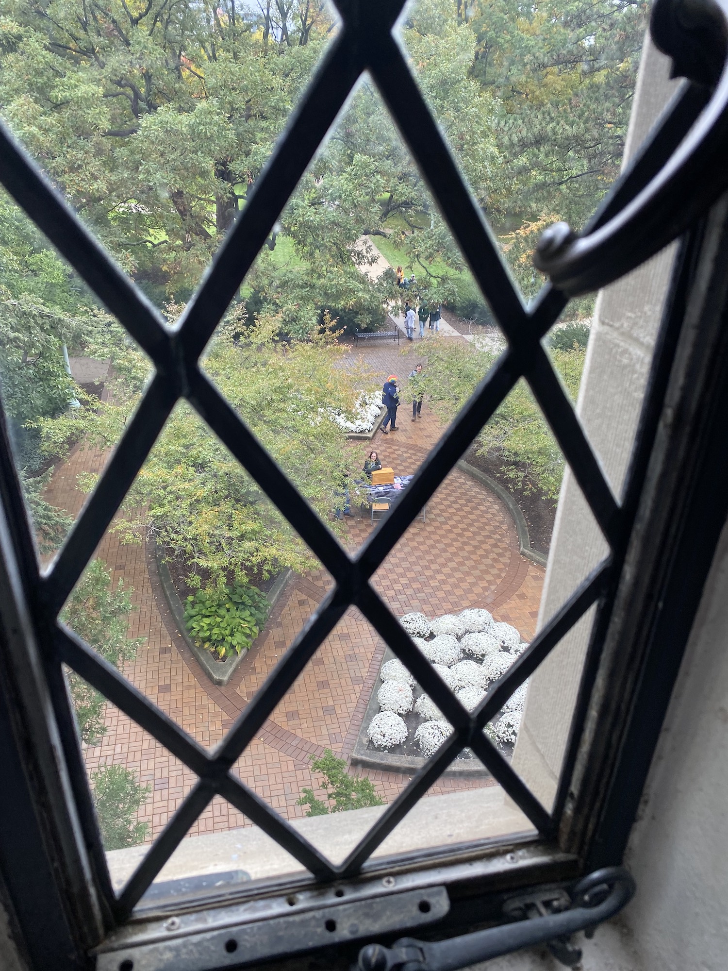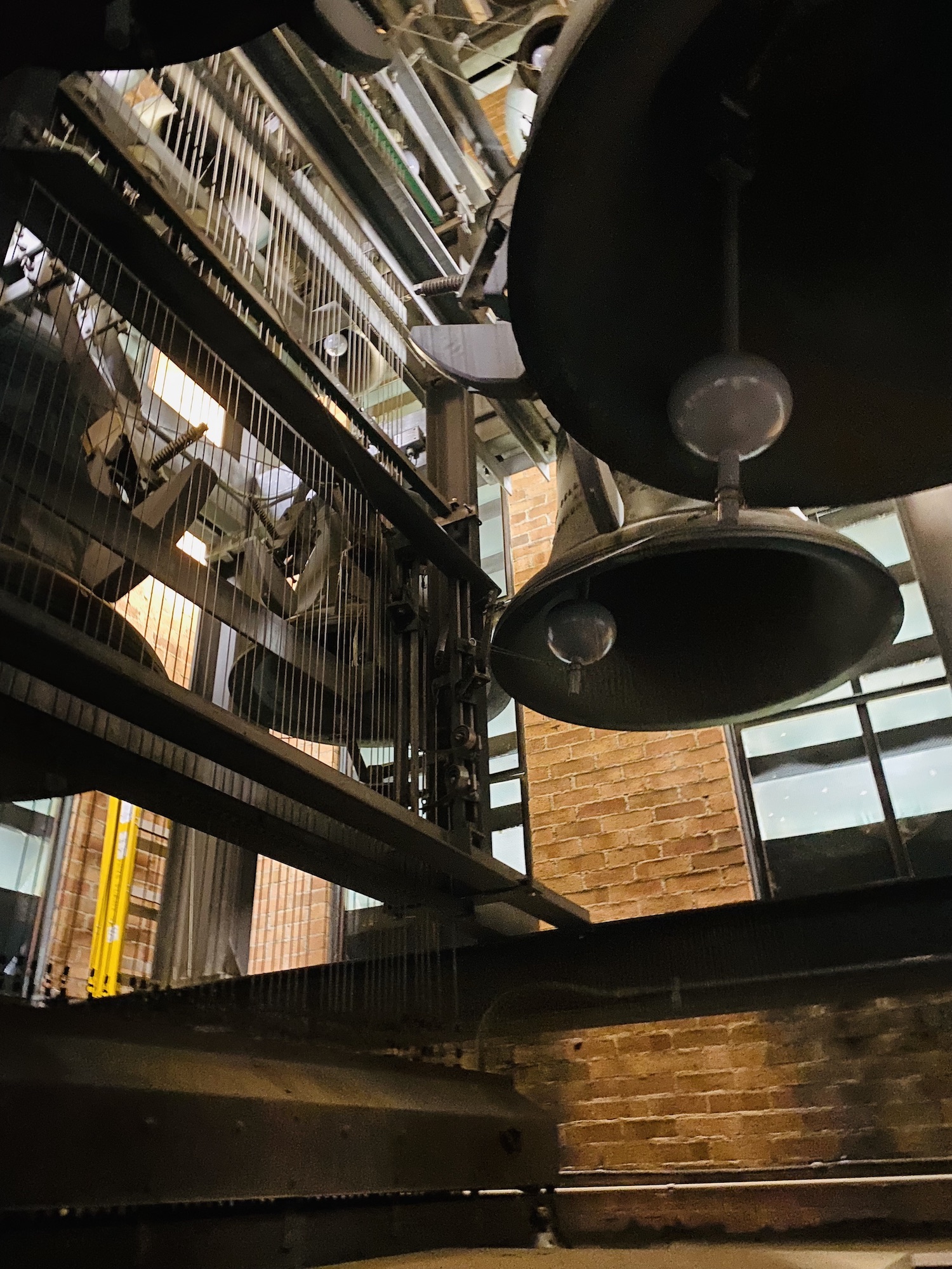 Upon entering, the first thing I noticed was the cathedral-like ceiling behind broad wooden doors and iron brocade windows cloudy with age. A trek up curling stairs leads to the second floor, the meeting room for Tower Guard, centered on the green sun-faded tapestry in the corner, adorned with white embroidery of the tower itself. The view here across the lawn is unmatched and the bells sounding from the floor above aren’t as loud as you would think. A final quick ascent leads to the third floor, a time capsule of a lounge for resident bell players, and a small hole in the ceiling leads to the carillon, the keystone of our campus.