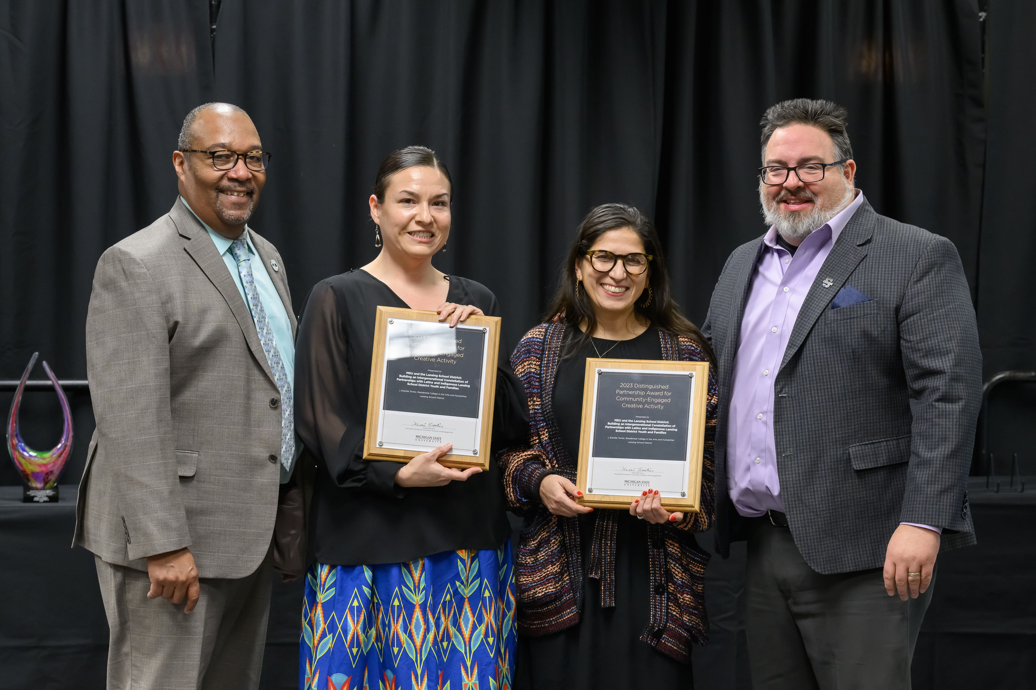 Estrella Torrez is an associate professor in the Residential College in the Arts and Humanities, or RCAH, at Michigan State University. Torrez holds a Ph.D. in educational thought and sociocultural studies and a master’s degree in early childhood multicultural education and bilingual education from the University of New Mexico. Torrez is a Gates Millennium Scholar and recently received MSU Outreach and Engagement’s 2023 Distinguished Partnership Award for Community-Engaged Creative Activity for her work with the Lansing School District: Building an Intergenerational Constellation of Partnerships with Latinx and Indigenous Lansing School District Youth and Families.