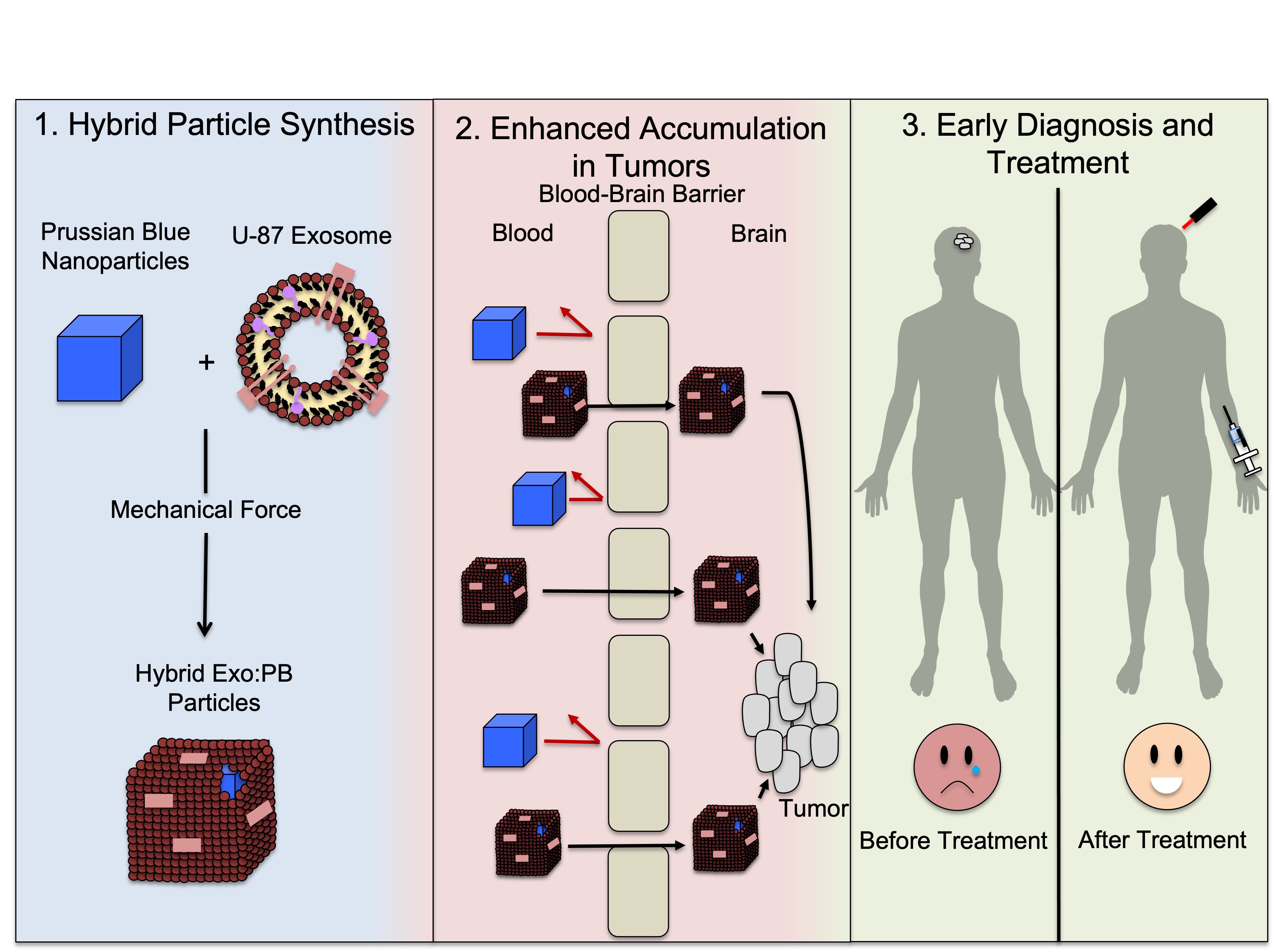 For our research, we use exosome or cell-coated Prussian blue nanoparticles that can cross the blood-brain barrier and specifically target tumor cells. Once the particles are near the tumor region, they can allow for early detection and localized treatment using heat. We use a photothermal treatment that uses laser light to illuminate the particles, which creates localized heat that kills cancer cells. This treatment also doesn’t cause those nasty side effects we often see with chemotherapy treatment.