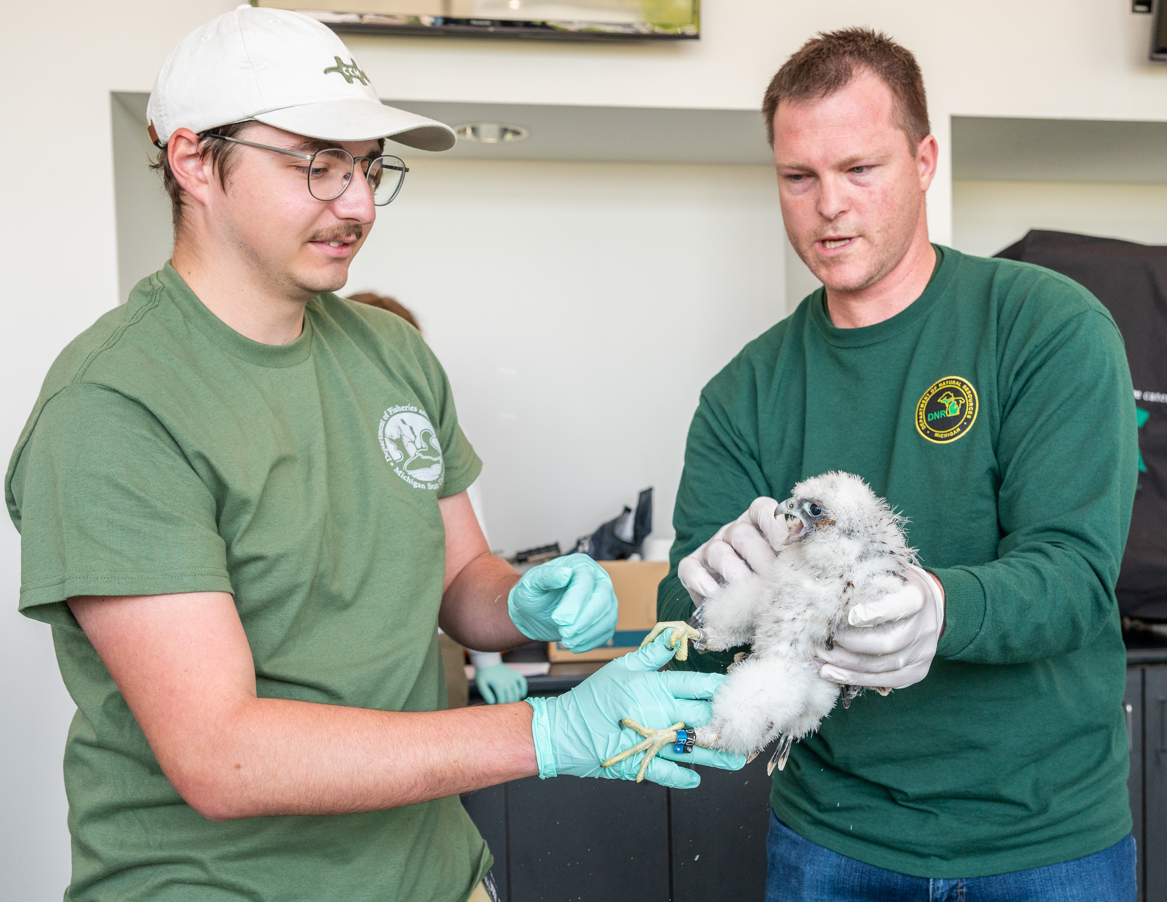 “Banding the chicks helps us track their survival,” said Jim Schneider, a senior specialist and undergraduate program coordinator in the College of Agriculture and Natural Resources at MSU. “As well as their migration patterns.”