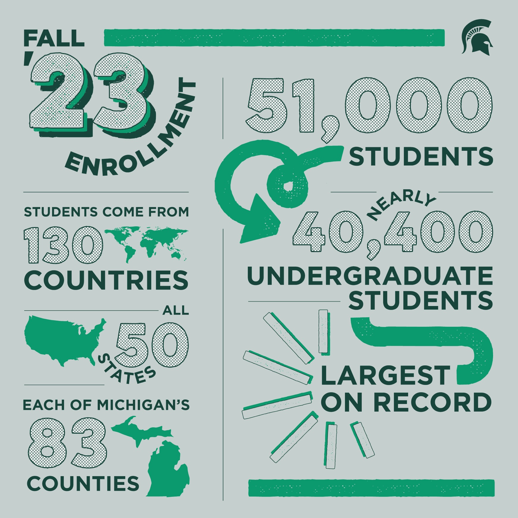 Michigan State University tallies a historic 51,316 students enrolled in the institution, one of the university’s largest-ever enrollments for a fall semester.
