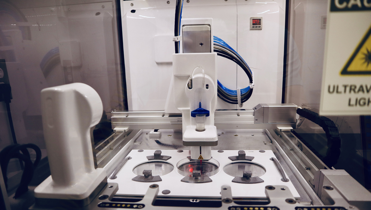 Currently, 3D printing is best known for the commercial benchtop machines that can create custom parts and prototypes by building them up one layer at a time using polymer resin or “ink.”