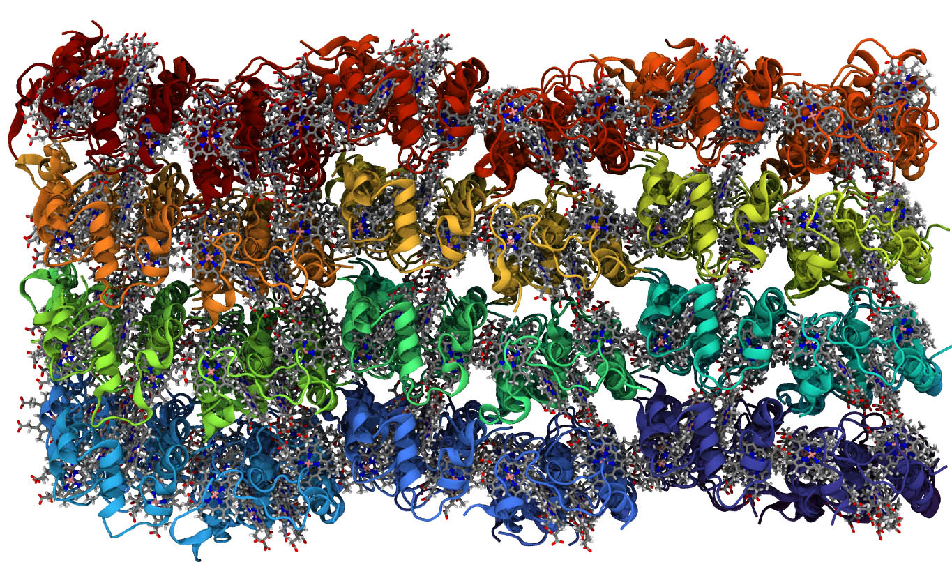 Martin Kulke, first author of the study, accompanied by the Vermaas lab team, created simulations of crystals using data from the real-life experiments in the PRL Kramer lab, where they pointed a light source at a nanocrystal made up of proteins and calculated how fast excited electrons traveled through it. The real question was why electron transfer was getting slower with increasing temperature, which usually accelerates processes at the nanoscale.