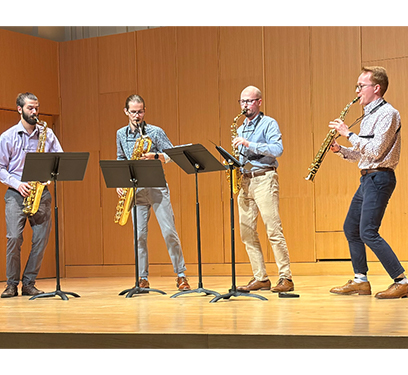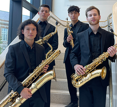 PULSE is an internationally award-winning undergraduate saxophone quartet at Michigan State University studying under Professor Joseph Lulloff. Its mission is to deliver a diverse range of repertoire that will engage and inspire any audience while breaking down the proverbial barrier between the audience and the performer. This past summer, PULSE was artists in residence for the 2023 Manitou Music Festival in Glen Arbor, Mich. Previously, the quartet was artists in residence for the Interlochen Public Radio and the Sound Garden Project. PULSE was awarded first prize in the Performing Artist Division of the 2023 NOLA Chamber Festival Competition, won second prize at the 2022 Barbara Wagner Chamber Music Competition, and advanced as finalists in the 2022 Coltman Chamber Music Competition and 2022 North American Saxophone Alliance (NASA) Quartet Competition. In addition, PULSE has been internationally recognized, receiving 2ème Prix à l’unanimité in the Chamber Music Division of the 2022 International Music Competition. The ensemble has played for many esteemed musicians such as Branford Marsalis, members of Eighth Blackbird, Stacy Garrop, Christopher Creviston, h2 Quartet, and Taimur Sullivan. All members of the quartet value the kind of brotherhood and camaraderie that blossoms while playing chamber music.