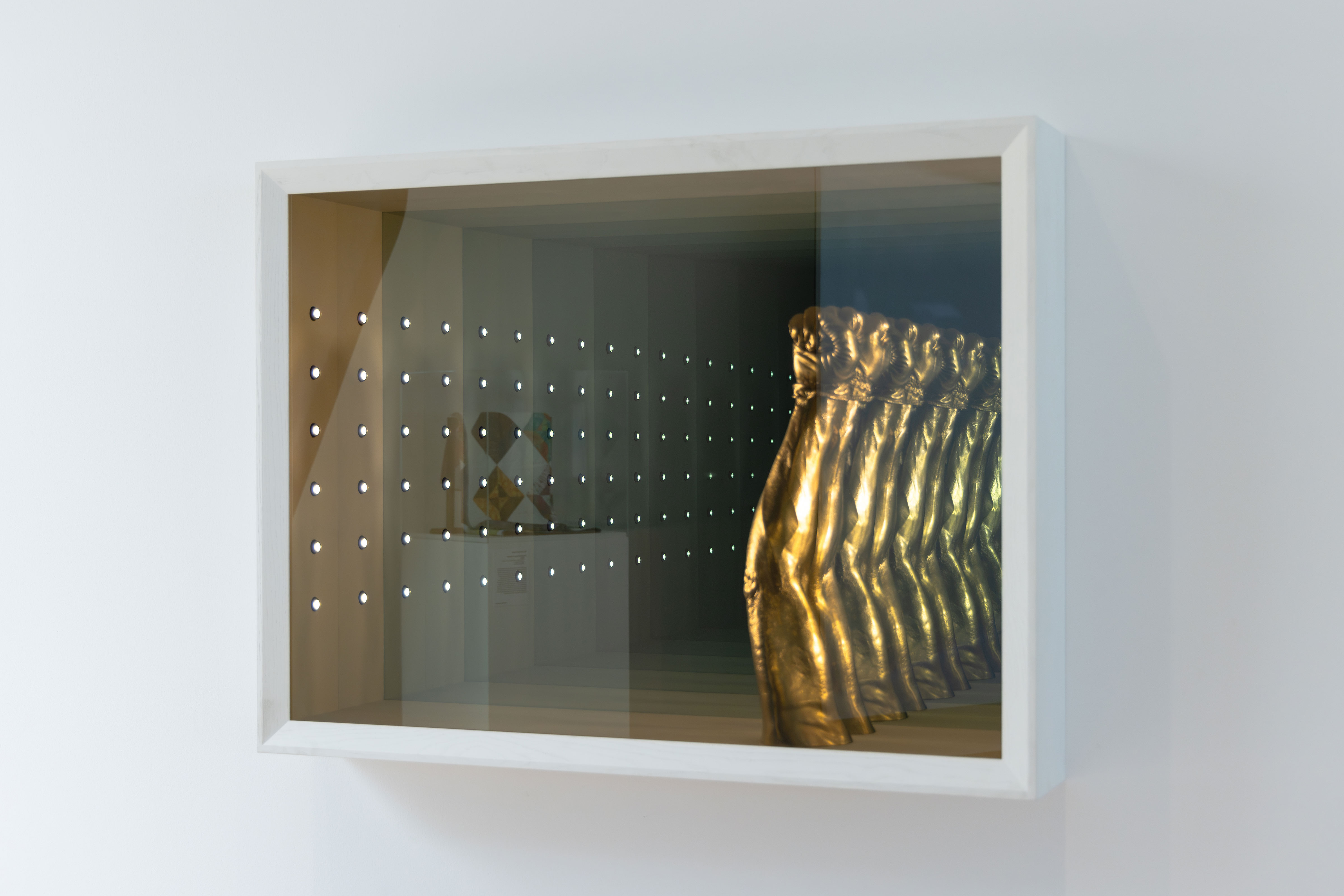 Among the artworks included in the exhibition is a sculptural work by artist Glenn Kaino, which features a gold cast of Smith’s fist in a frame of infinity mirrors. Smith became famous for raising his fist at the podium to protest the treatment of Black individuals in the U.S. after winning the gold medal in the 200-meter race at the 1968 Olympic Games in Mexico City.
