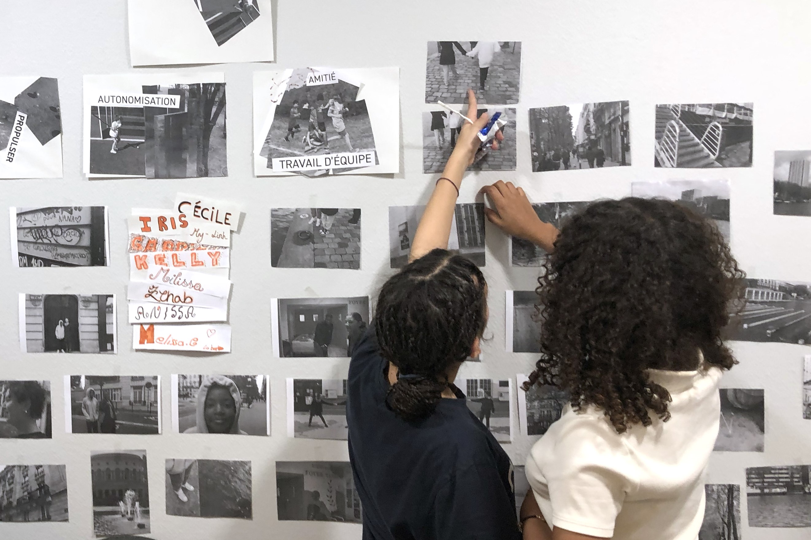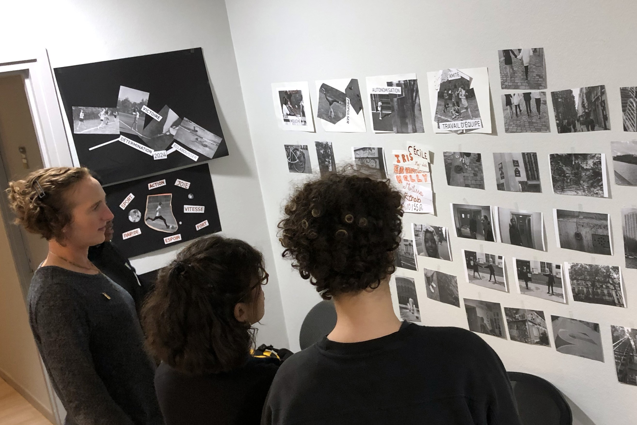 In anticipation of her collage workshops in Paris, Salchow MacArthur took photos in Michigan of kids being active, of different sports objects and of athletic venues, as well as came up with a list of words in English and French that embodied Olympic values. To recognize their own neighborhoods, Salchow MacArthur also took photos in the 10th and the 19th arrondissements, or districts, where the community centers and kids she would be working with were located.