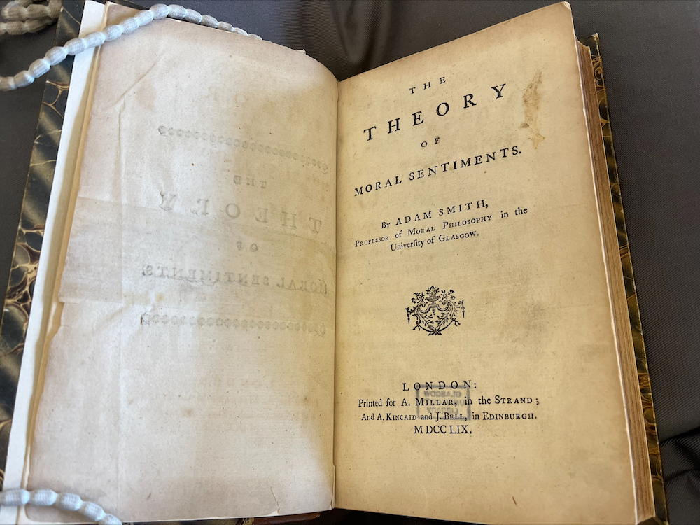 In the Smith archives, I was able to see the first editions of his work, unpublished notes, and in Edinburgh specifically, review some of the books he held in his personal library and examine them for notes he took in the margins. In Glasgow, I was able to see the student notes from his courses on jurisprudence which are the only record we have of what would have been a third work from Smith but was never completed. I further analyzed his various early fragments on the division of labor that eventually appear as the first chapters of Wealth of Nations—some of these are published. All of this research and more helped advance my understanding of Smith’s perspective on political economy and the interaction of morality, politics, and economics.