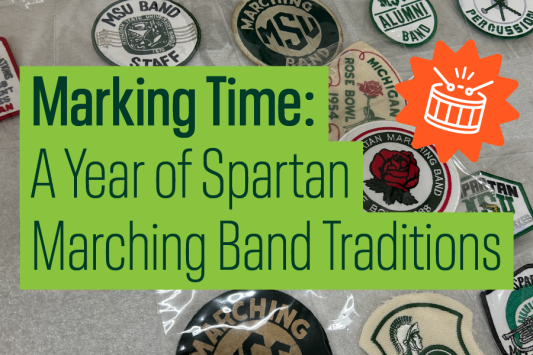 We have all heard them on game day, but what do you really know about the Spartan Marching Band? Come march alongside them through a year in the life of band traditions, from auditions to postseason. This exhibit, curated by the Museum Studies Curatorial Practices class, invites you to a behind-the-scenes look at the history and traditions that shaped one of MSU’s oldest student organizations: the band we know and love today.