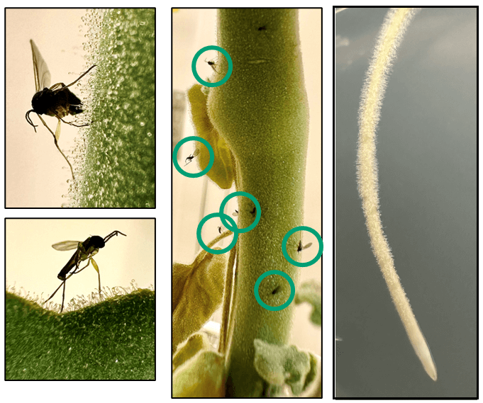 “Take for instance acylsugars. You won’t find them produced in the leaves or stems of a tomato plant. These physically sticky defense metabolites are made right in the tip of the trichomes.”