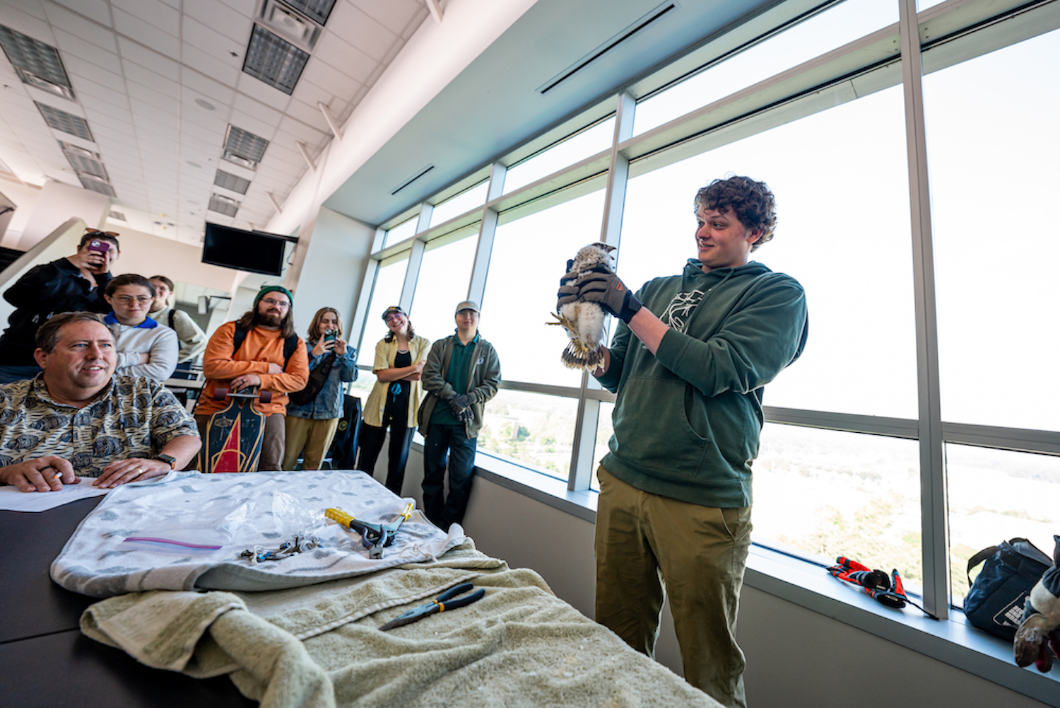 “Peregrine falcons are an endangered species in Michigan, so it's an intimate opportunity to see the falcon at its most vulnerable stage of its life,” Herbert said. “The banding is a sort of sending away party for the falcons before they are developed enough to leave the nest, and it is a good representation of some professional work in the field of Natural Resources and Conservation.”