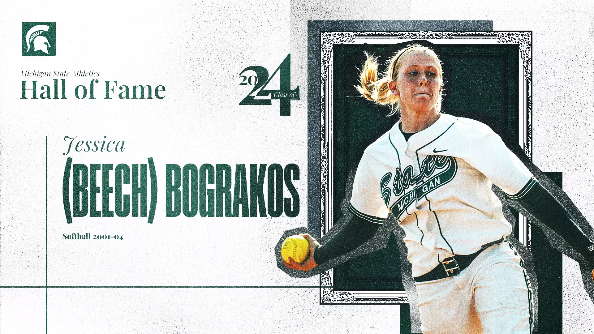 An elite two-way athlete, Jessica (Beech) Bograkos becomes the eighth Spartan softball player to be inducted into the Michigan State Athletics Hall of Fame. Now 20 years removed from her graduation, Bograkos remains prominent in the Spartan record book with four career records, five single-season records and one single-game record.