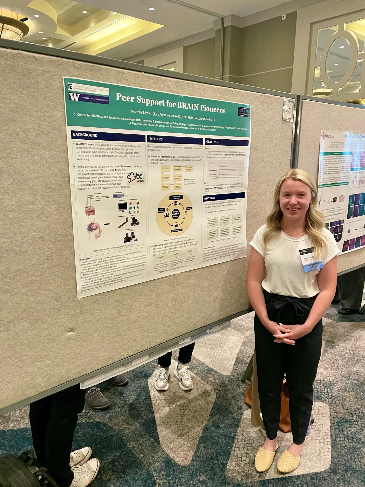 Working in public health has allowed me to broaden my professional experiences. In my current role as a research assistant in neuroethics, my principal investigator, Dr. Michelle Pham, encouraged me to submit an abstract on our NIH-funded research to the 10th Annual NIH BRAIN Initiative Conference in Rockville, MD, where I was recognized as a Scholar Spotlight Runner-Up for my abstract submission.