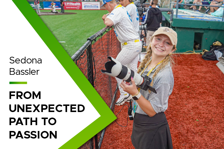 Bassler was a creative services intern for the Madison Mallards, a summer college baseball team in Madison, Wisconsin. She brainstormed and planned promotional content, created pre-game TikToks, captured photos and video and produced graphic design content.