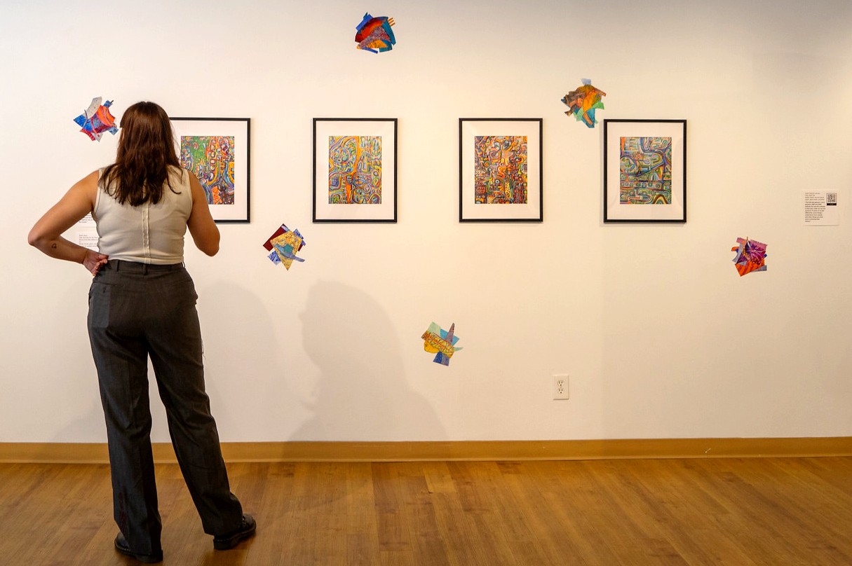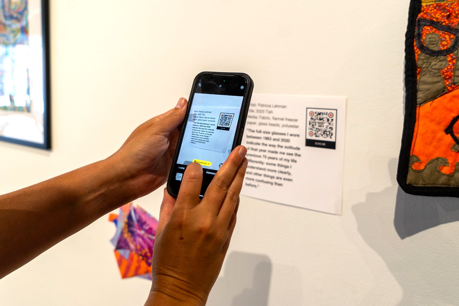 “Each art piece is attached to a story of how that person used art to cope during COVID or turned to creativity as an act of protest, self-care, or resistance,” Phillips said. “You can find these actual stories by scanning the QR code by each artwork.”