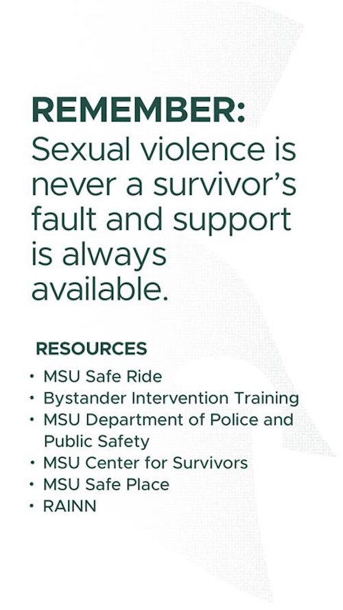 The fall semester of college is an exciting time for students, especially for first-year students navigating a newfound independence and a lively campus filled with new people. As students converge on campus and East Lansing for the start of a new academic year at MSU, its common for individuals to encounter uncharted social situations, meet new peers and navigate foreign surroundings. Unfortunately, it’s during these times — when students are outside of their comfort zone — that certain people look to exploit these circumstances to commit sexual violence.