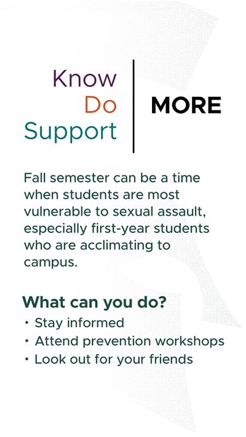 Studies show that more than 50% of campus sexual assaults occur during the timeframe spanning the beginning of the academic year through Thanksgiving, making it critical now to spread awareness and foster a culture of safety, support, and prevention.