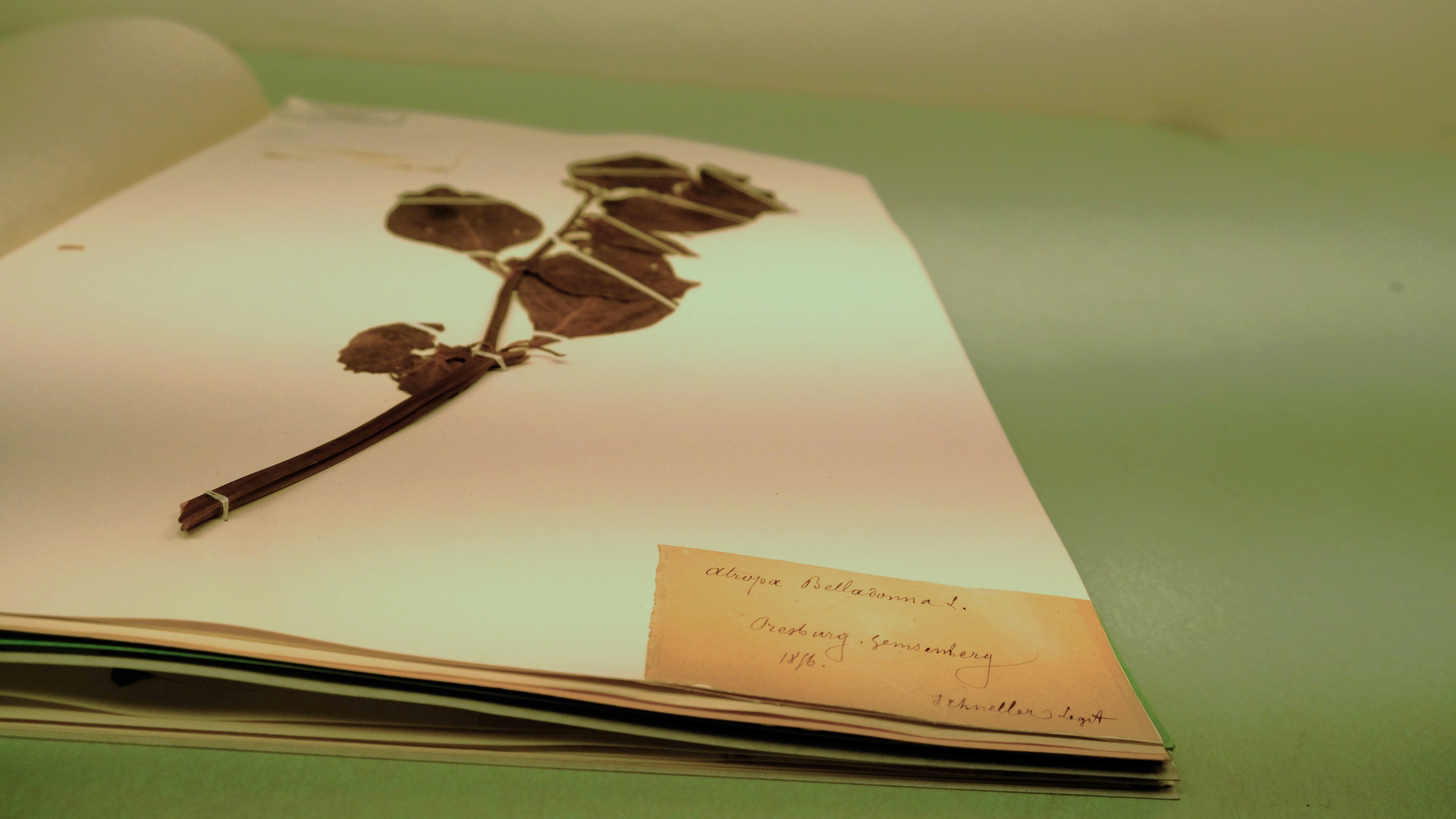 Here, a specimen from the MSU herbarium shows a pressed & dried branch of Atropa belladonna collected and preserved in 1816.