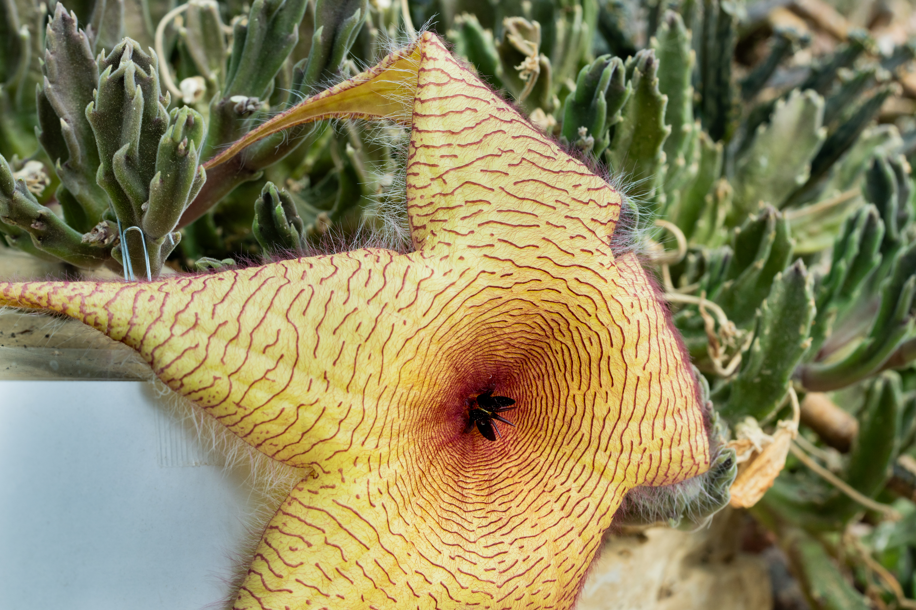 Bearing a striking resemblance to “Stranger Things’” Demogorgon, the plants of the genus Stapelia look something like a cross between a starfish and Star Wars’ Sarlacc Pit. These flowers, like the corpse flower, emit the scent of decay to entice pollinators. Stapelia have the added benefit of resembling rotting meat; their petals are thick and covered with red and white striations.