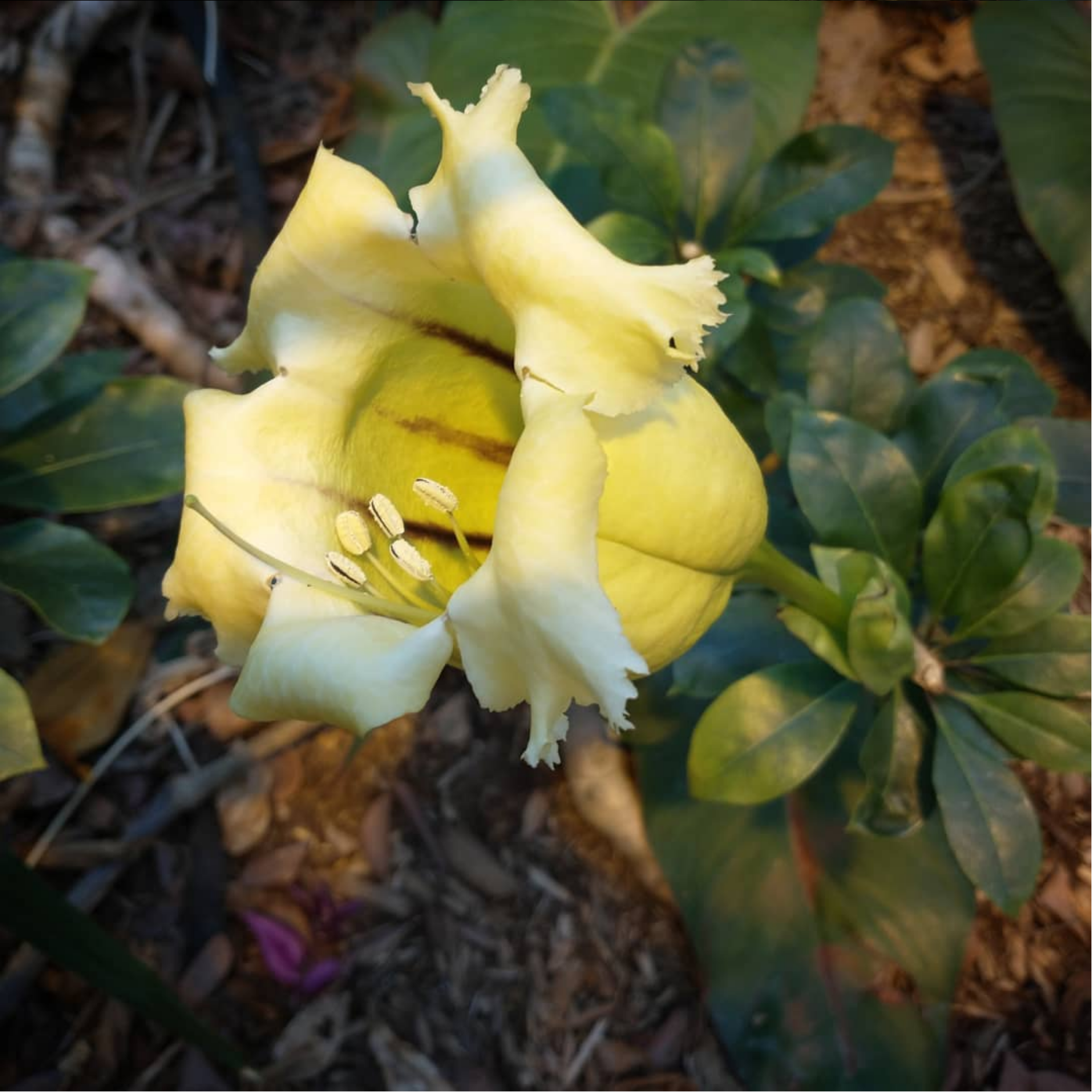 Also called Chalice Vine, these toxic plants have a native range stretching from central Mexico to South America, and a long history of use as a hallucinogen — sometimes with unintended and fatal consequences. Solandra’s large, pale-yellow flowers open primarily at night and feature large openings – an adaptation which accommodates their preferred pollinators — bats!