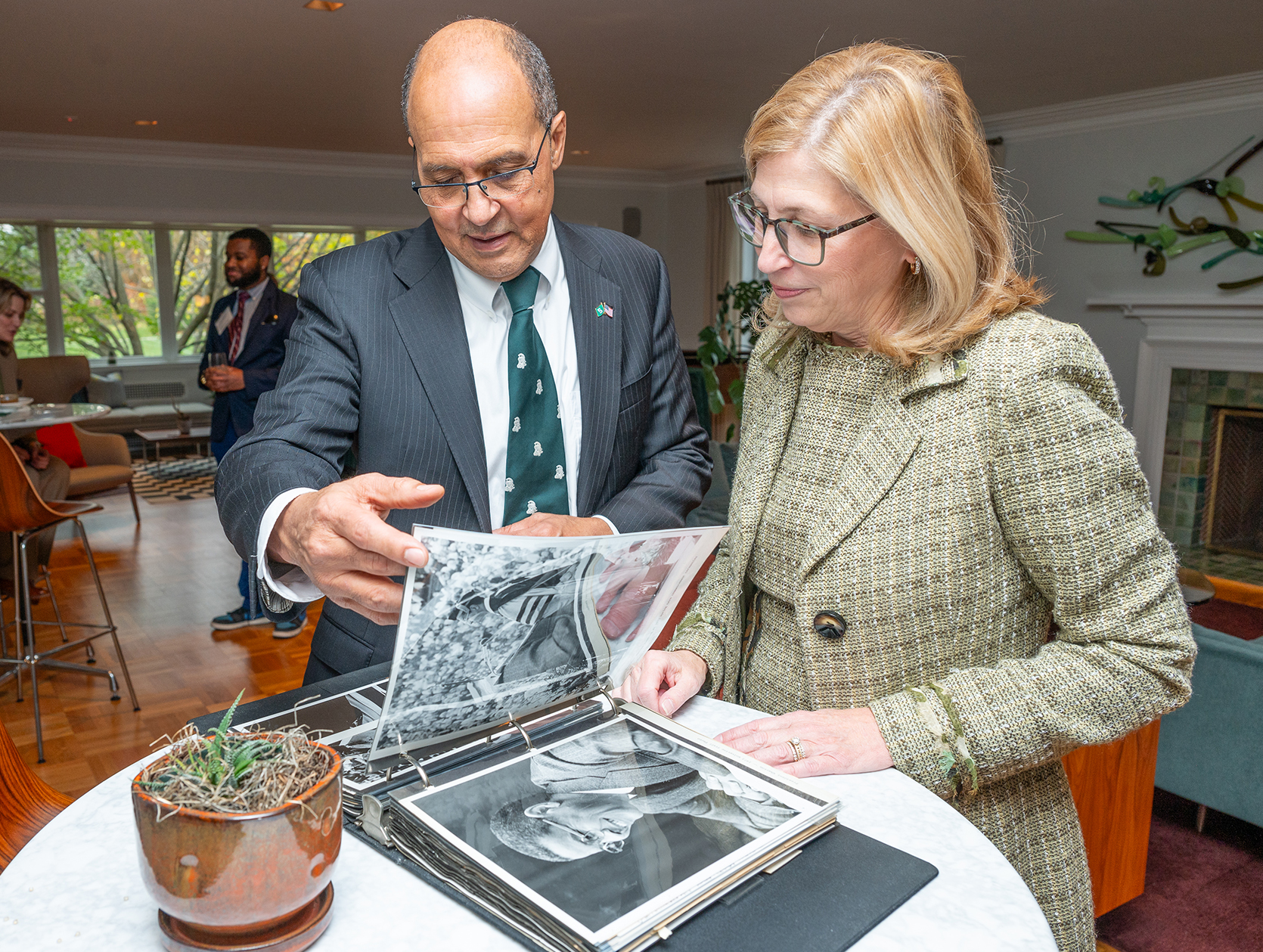 Fast forward to 2022 when Teresa Woodruff was MSU’s interim president. She informed me that she would be visiting the Whartons at their home in New York in December. Upon hearing her plans, I told her that I was in possession of a binder full of photos taken during Dr. Wharton’s years as MSU’s 14th president. I asked if she would take the book with her, along with the message: “Compliments of the university photographer.”