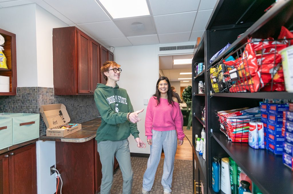 At the heart of this initiative is the belief that wellness should be accessible, efficient, and centered on the needs of individuals. Gray, (B.A. Social Work ’18, Master’s Social Work ’20) is completing her first year at MSU in her role. Her goal was to create a solution that bridged the gap between academic success and basic needs that, for some, can be hard to come by. After four years of working within the Ann Arbor community, Gray wanted to focus her talents on working with college students, helping to set them up for success. Her goal is to create a space for students to have access to basic need items, allowing them to be more focused on their academic success.