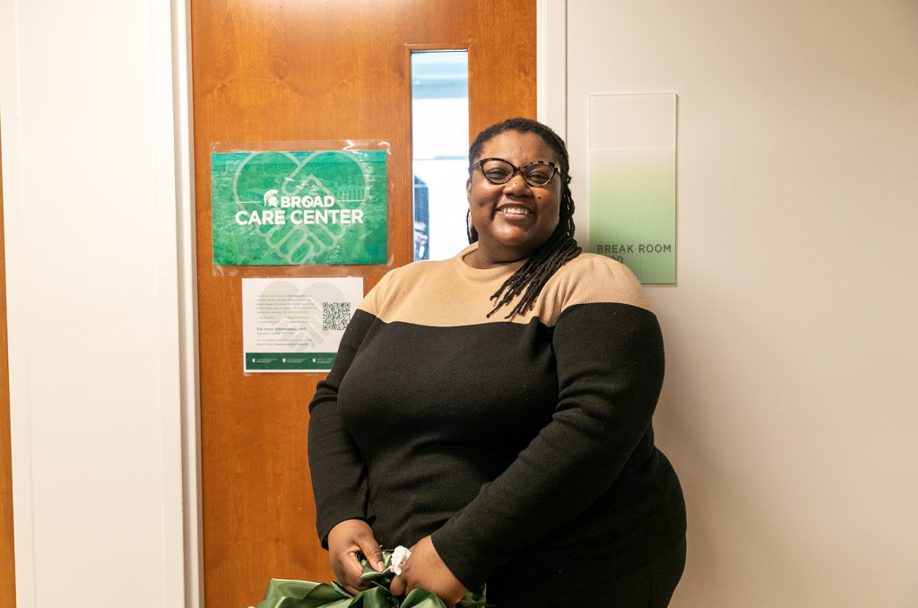 This initiative has been widely supported by multiple organizations throughout the college. After sharing her thoughts with The Multicultural Business Program, they offered Gray the space for the center and shelving. The School of Hospitality and Business and the Department of Accounting and Information Systems won a college-wide friendly competition to raise money and supplies for the center. With the help of The Russell Palmer Center, donors like SC Johnson Family Co., are actively working with the care center to provide assistance. Additional support came from several student workers, the dean’s office, The Residential Business Community, the Marketing and Communications team, Broad faculty and staff, and Undergraduate Academic Services.