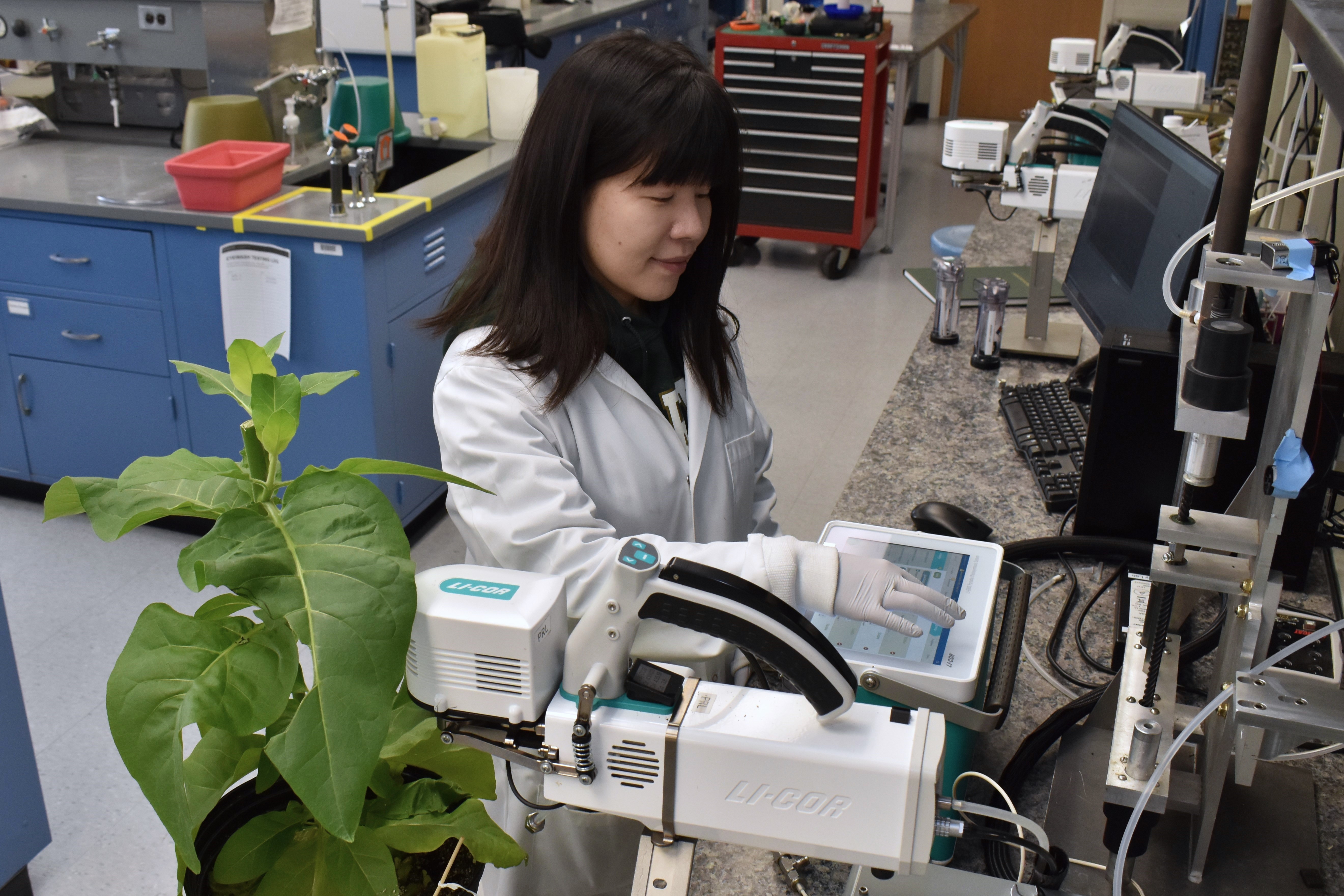 Researchers in the MSU-DOE Plant Research Laboratory, or PRL, Sharkey lab are studying changes in plant metabolism that occur when plants are grown in high light, high CO2 conditions.