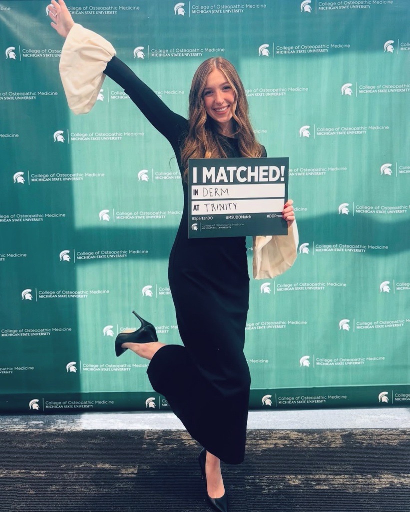 Madison George saw her dreams come true on Friday, March 21 when she matched into the dermatology residency program at Trinity Health Ann Arbor Hospital — a pathway she hadn’t anticipated when first entering the doors of the Michigan State University College of Osteopathic Medicine.