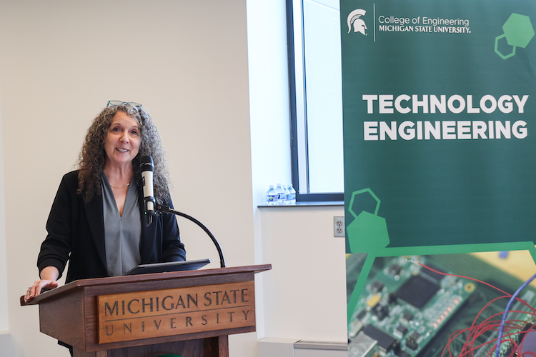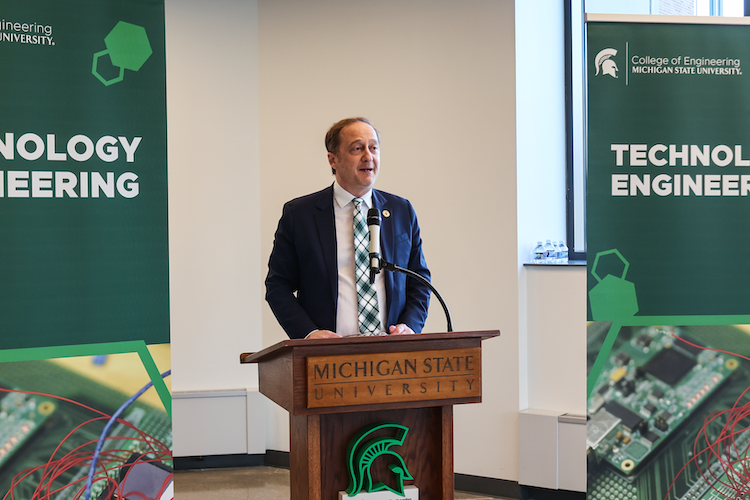 The Michigan State University College of Engineering officially introduced its new Technology Engineering, or TechE, undergraduate degree program to media, industry partners and the campus community at an April 17 event held in the MSU STEM Teaching and Learning Facility.