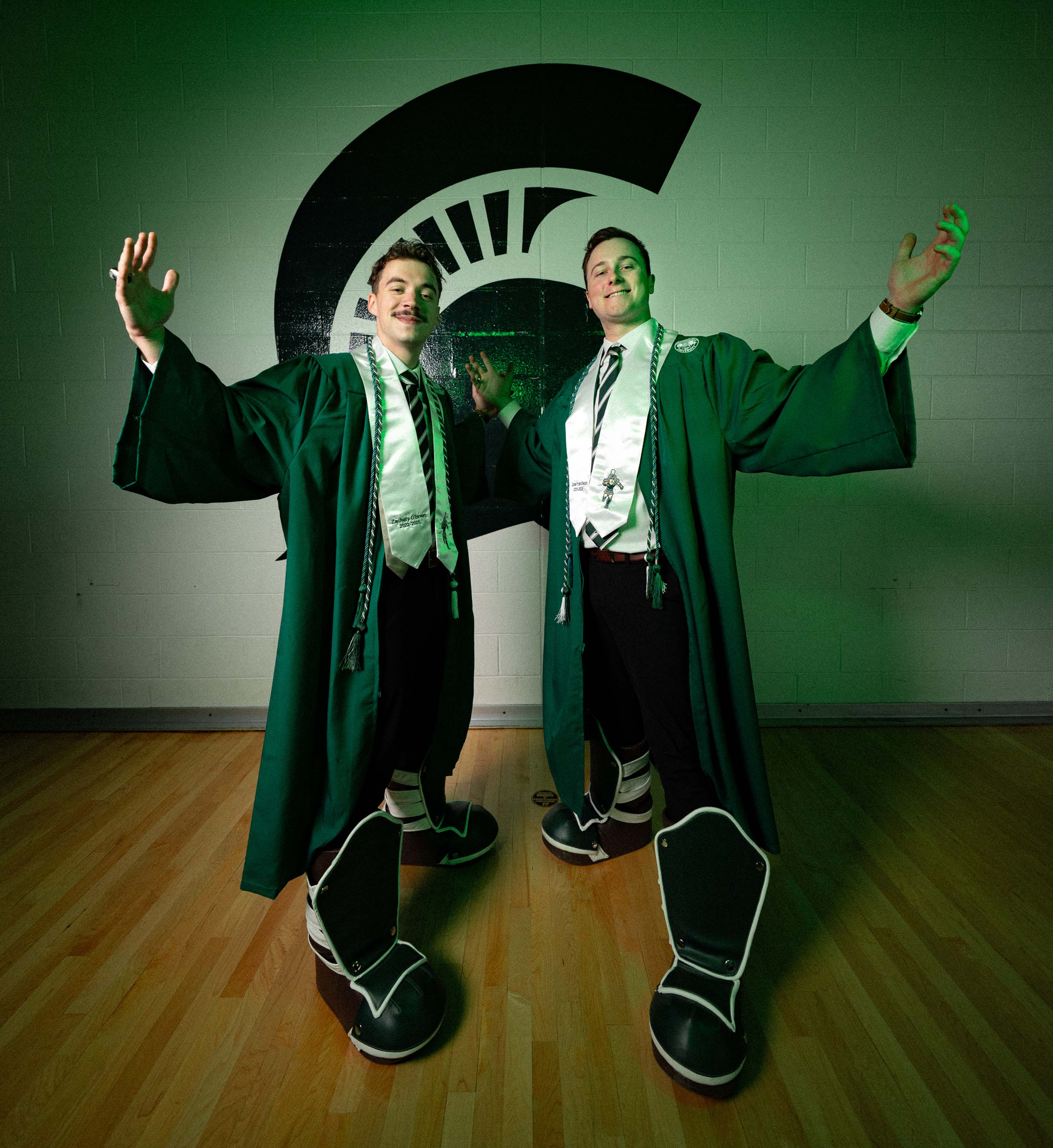 This year's Sparty graduates are Zachary O’Brien, a graduate of the College of Communication Arts and Sciences, and Zane Francisco, a graduate of the Broad College of Business. Together their footsteps echo with history, becoming part of the legacy of dedicated and passionate Spartans who have donned the suit before them and serving as an inspiration to those who will follow.