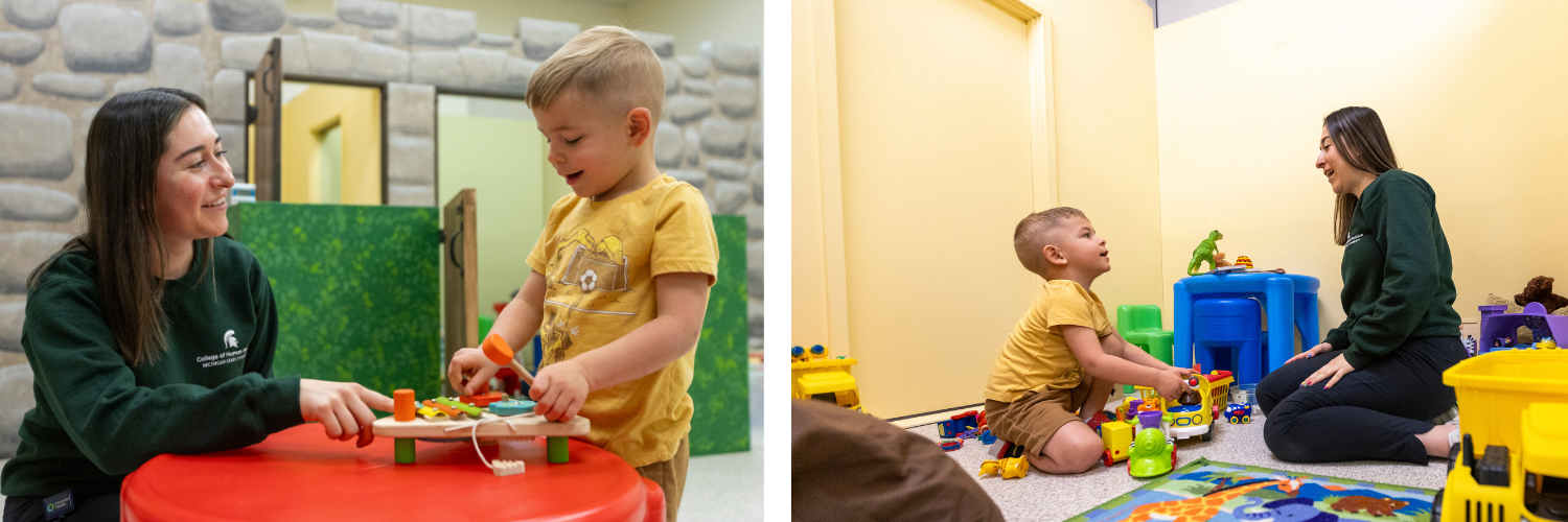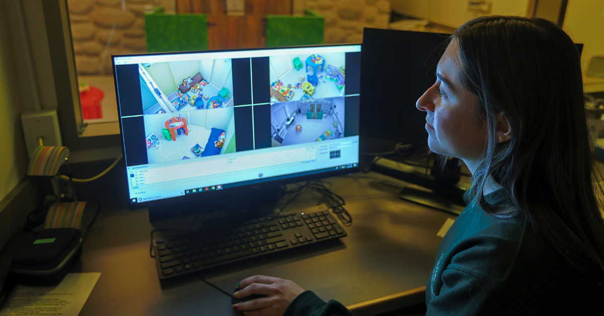 The castle features two identical rooms with the same toys in each space. A social experimenter, often a College of Human Medicine student, interacts with the child in one of the rooms. When the social experimenter leaves, Thompson and her team measure the amount of time the child chooses to spend in each room.