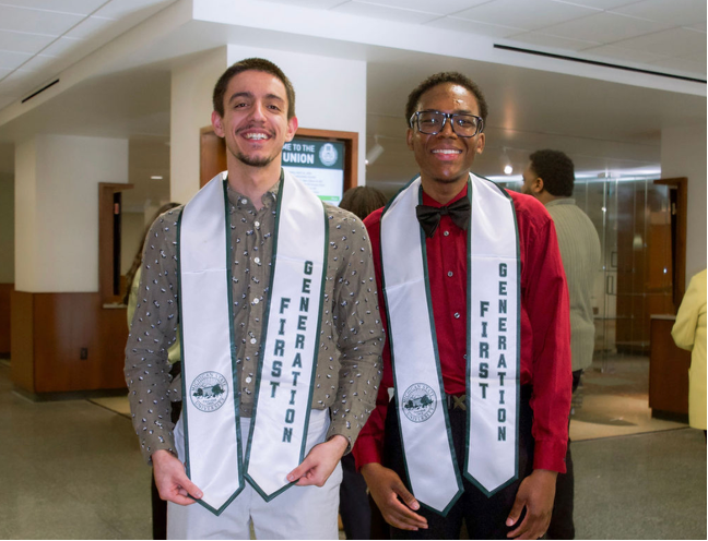 This year, in an inaugural ceremony, first-generation graduating Spartans received their very own vestment: a graduation stole. Often representing an accolade or affiliation, a graduation stole is a narrow sash worn by students around their neck and shoulders during their formal commencement ceremonies, offering visual acknowledgement of graduates' hard work and communities.