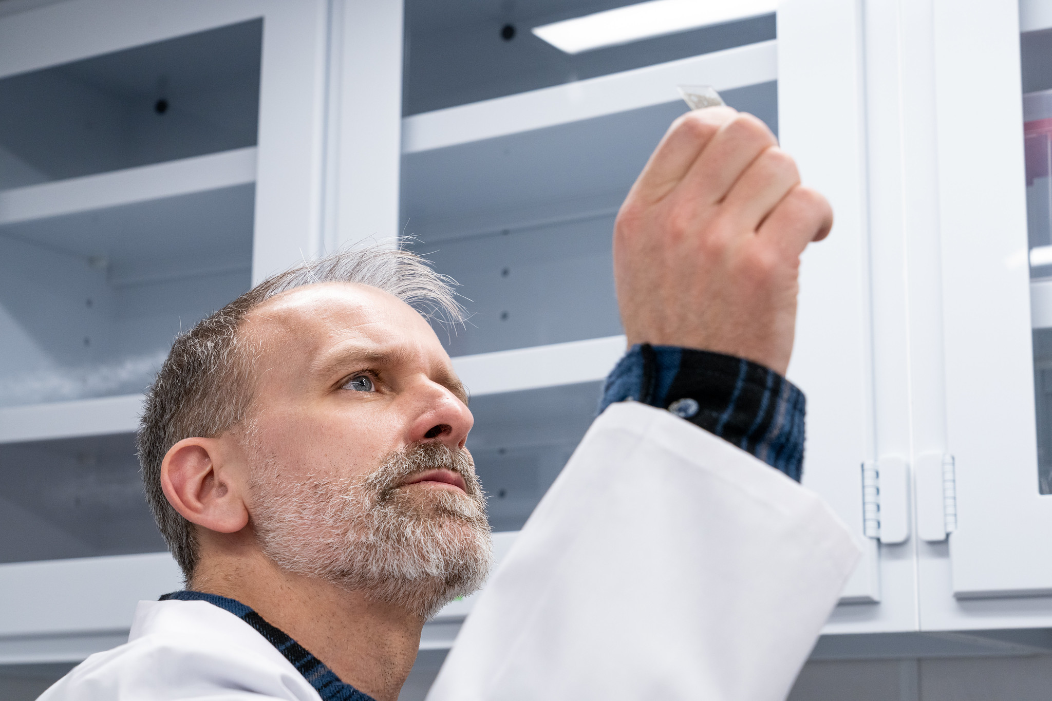 In his lab, Rooney and his students serve other MSU departments, turning materials into pressed powders and analyzing samples. His students learn how to run the samples themselves and operate the high-level analytical machinery.