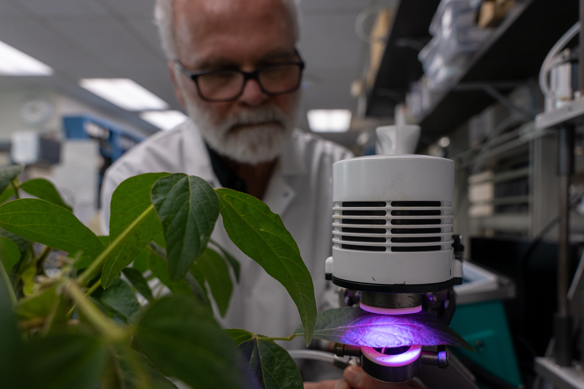 Until recently, scientists thought crop plants like soybeans and corn didn’t produce isoprene because their ability to do so was lost through evolution. Then, in 2022, researchers discovered two intact isoprene synthase, or ISPS, genes in soybeans. Sharkey decided to experiment whether environmental stresses could activate the dormant ISPS gene.