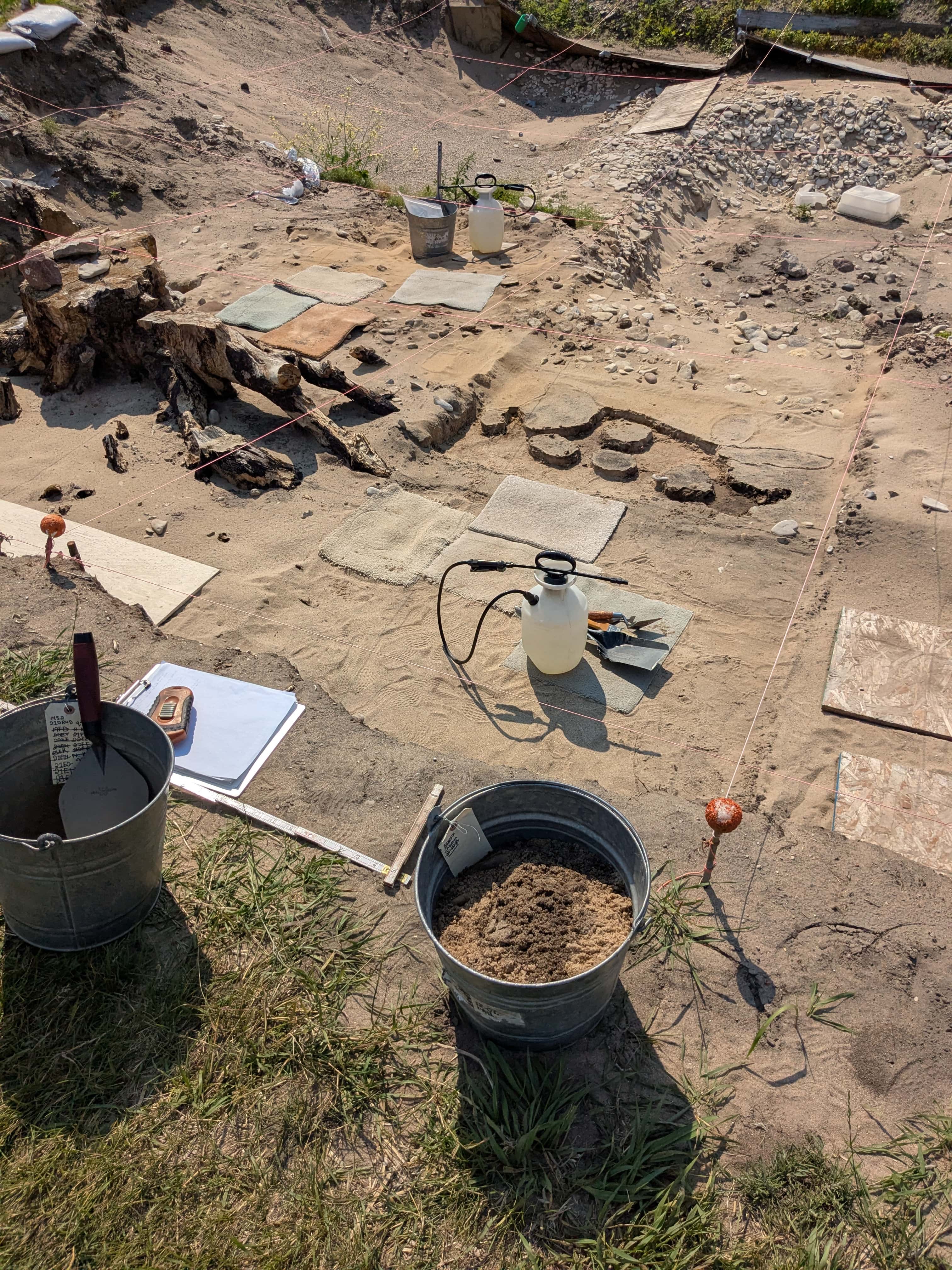 Our work is a product of history itself, through our use of the original grid system implemented in 1959 when excavation first began. Our current excavation unit was opened in 2007 and was a fur trader’s house during both the French and British occupations of the fort. The rowhouse our building is a part of was originally built in the 1730s when the French expanded the walls of the fort the first time, was rebuilt in the 1760s by the British, and then torn down by the British in 1781 during the move to Mackinac Island.